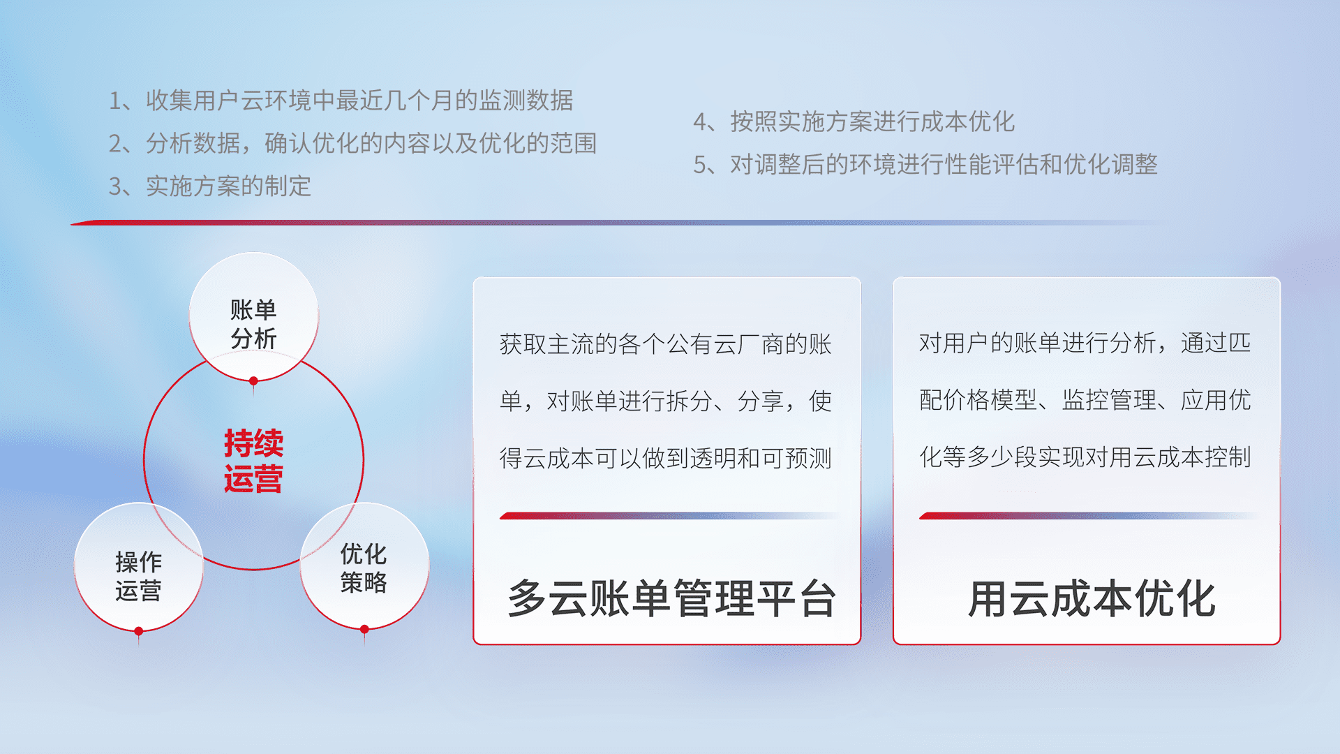 运用智能化工具分析云资源,,提供日常费用可视化工具,,,自动账单拆分,,,,成本优化云上费用,,,降本增效。。。。